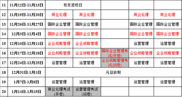因两位李老师临时出差,现将《企业战略管理》、《国际企业管理》、《商业伦理》上课时间对调,上课地点不变。请大家做好相应准备。调整后课表如下: