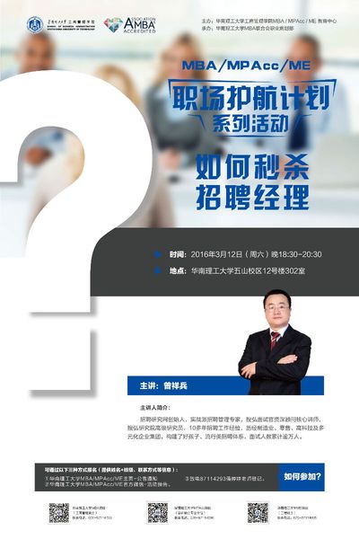 【活动预告】MBA/MPAcc/ME职场护航系列活动之如何秒杀招聘经理