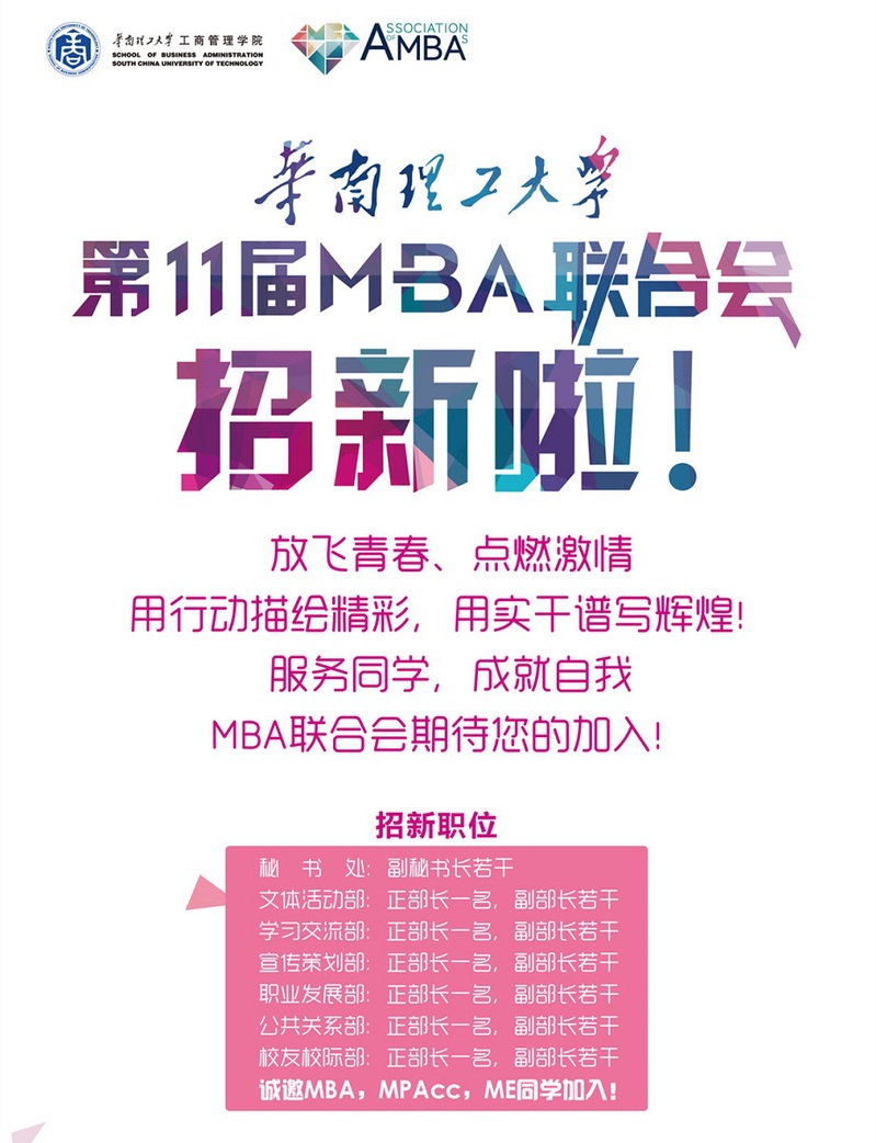 华南理工大学第十一届MBA联合会招新公告及各部门部长选举办法