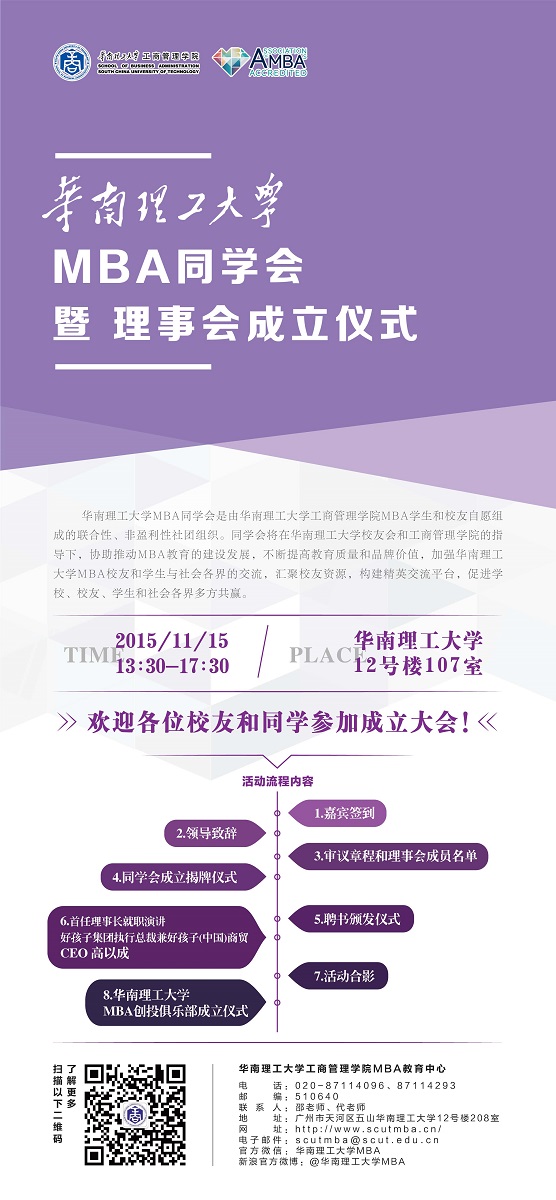 【活动预告】华南理工大学MBA同学会暨理事会成立仪式