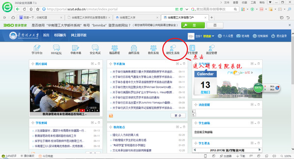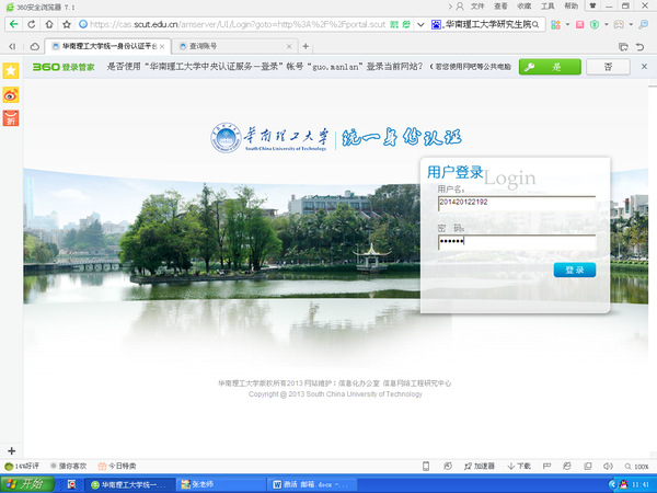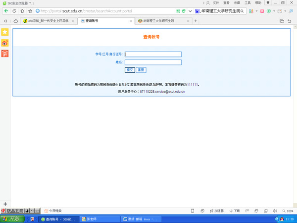 Ø 2013级MBA以前的学员(含2013级):登录的账号可在学校主页下方的“服务指南”页面上点击“学生教工统一认证账号查询”(http://portal.scut.edu.cn/cmstar/searchAccount.portal)查询该账号。