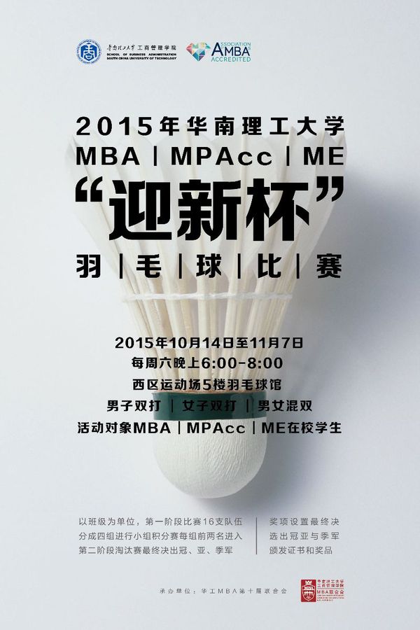 【活动预告】“迎新杯”华南理工大学MBA/MPAcc/ME羽毛球赛