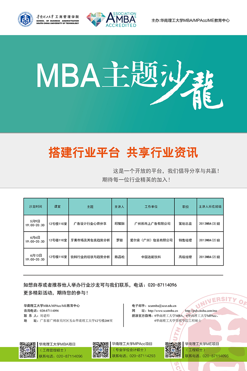 【MBA主题沙龙】5-6月主题沙龙时间表