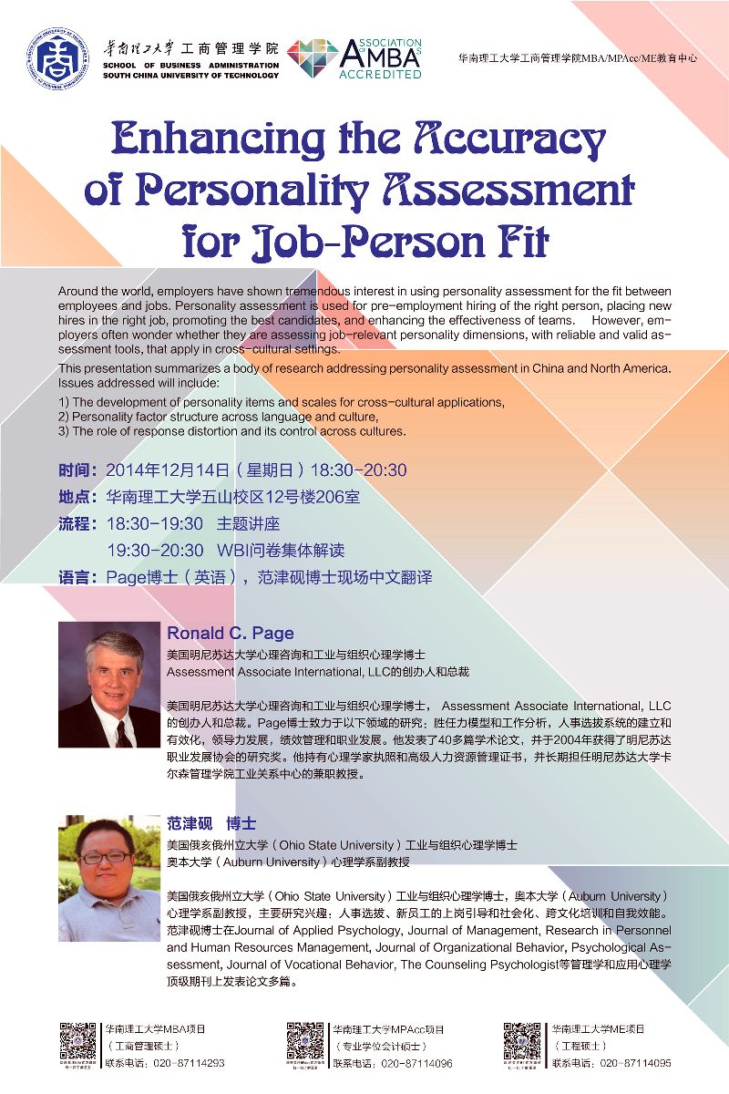 【讲座预告】Enhancing the Accuracy of Personality Assessment for Job-Person Fit