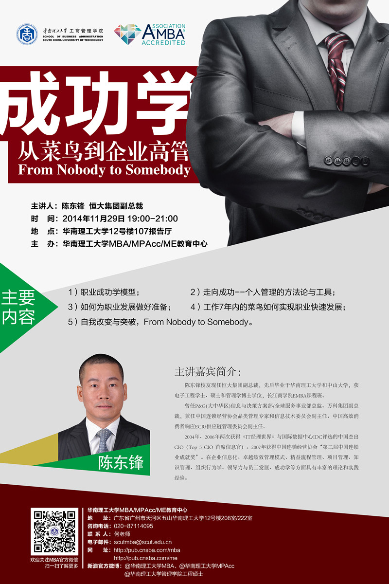 【论坛预告】成功学:From Nobody to Somebody——从菜鸟到企业高管
