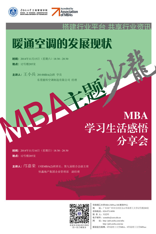 【沙龙预告】11月15日及16日两场MBA主题沙龙信息预告