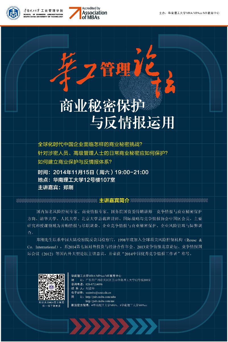【论坛预告】华工管理论坛:商业秘密保护与反情报运用