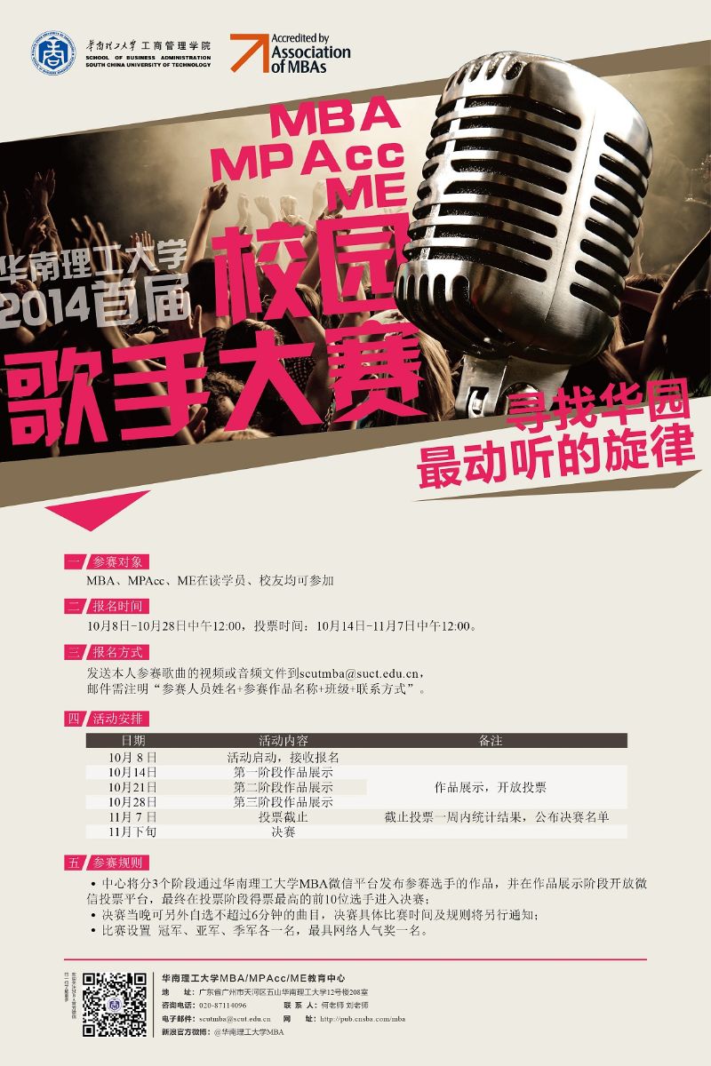 发送本人参赛歌曲的视频或者音频的文本到scutmba@suct.edu.cn,邮件需注明“参赛人员姓名+参赛作品名称+班级+联系方式”。