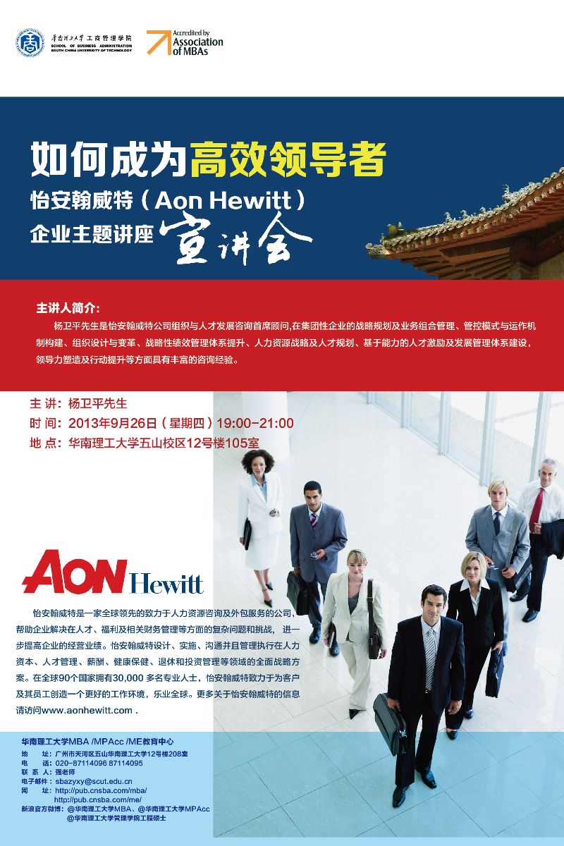 如何成为高效领导者——怡安翰威特(Aon Hewitt )企业主题讲座宣讲会