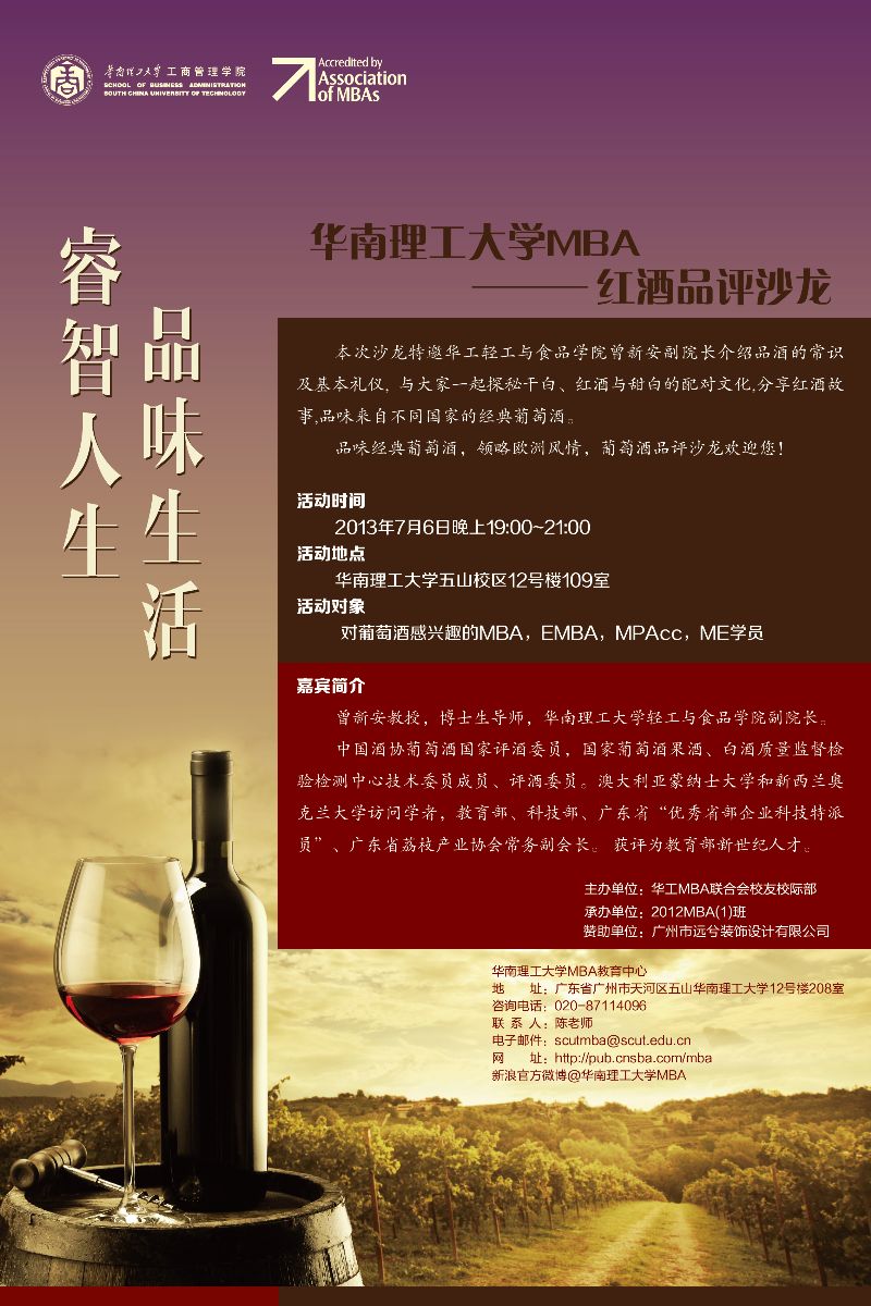 睿智人生,品味生活——华南理工大学MBA红酒品评沙龙