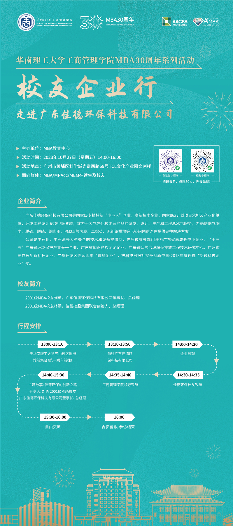 预告|MBA30周年系列活动校友企业行:走进广东佳德环保科技有限公司