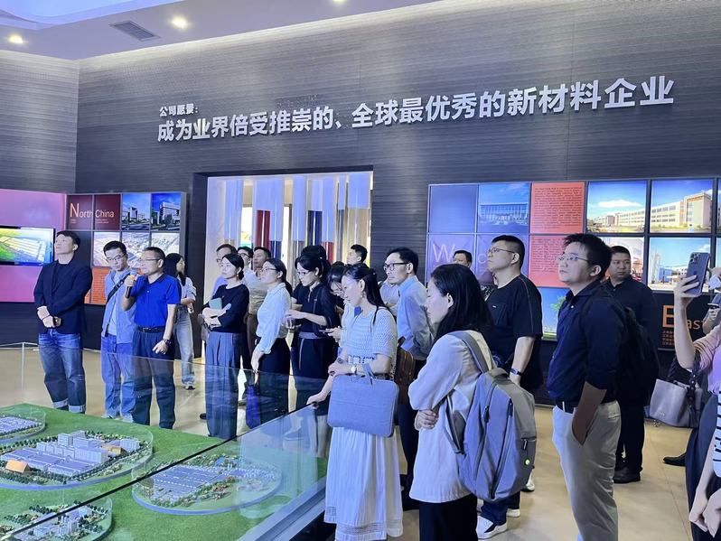 活动伊始,师生及校友一行参观了企业展厅、测试中心与实验室,实地参访其在智能制造领域的创新实践。金发科技从1993年以2万元资金起步的小车间,逐步成长为年销售额突破600亿元、拥有64家子公司的全球行业领军者,其发展历程生动展现了中国新材料产业的奋进之路。在企业展厅,大家了解到公司产品广泛应用于汽车、家电、电子电工、医疗健康、轨道交通等领域,为全球1000多家知名企业提供材料解决方案,彰显了其全球市场影响力。在测试中心与实验室,全生物降解塑料、碳纤维复合材料等前沿产品,让大家直观感受到科技驱动产业升级的创新实践。