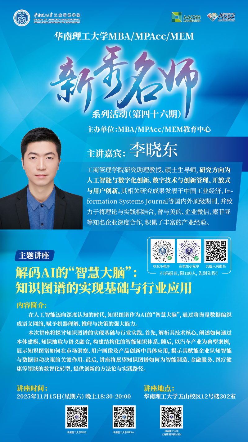 预告|新秀名师系列(第46期)@李晓东:解码AI的“智慧大脑”:知识图谱的实现基础与行业应用