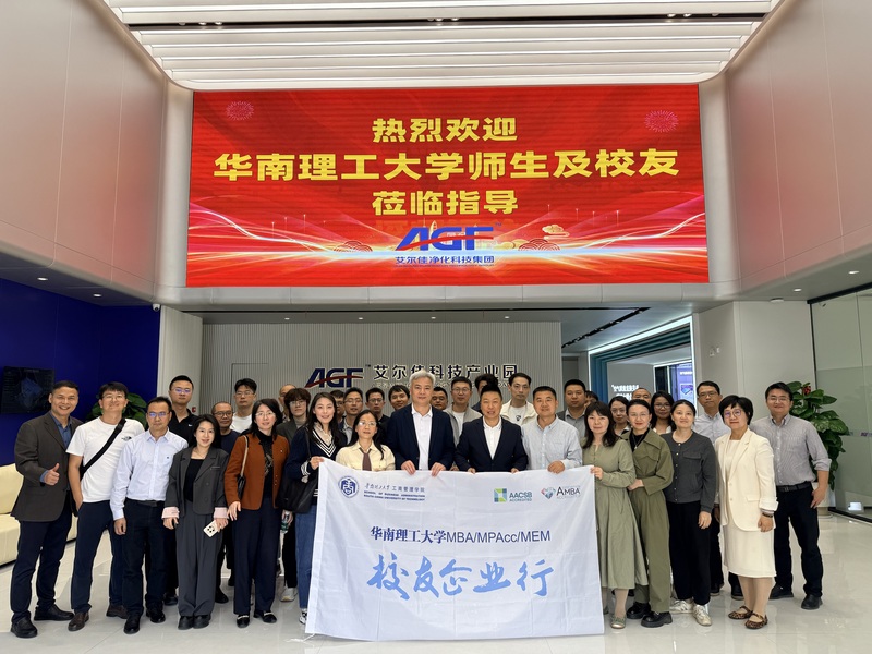 3月12日下午,华南理工大学工商管理学院MBA/MPAcc/MEM“校友企业行”走进艾尔佳净化科技集团。这家由我院2014级MBA校友张武创办的企业,十余年间从初创起步迈向全球化布局,现已跻身国家级专精特新“小巨人”行列,成为空气净化及环境健康领域的标杆企业。